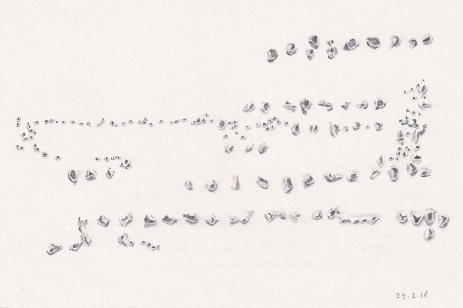 Chaque jour qui passe series, Indian ink, pencil and thread on paper, 14.8 × 21 cm, 2018