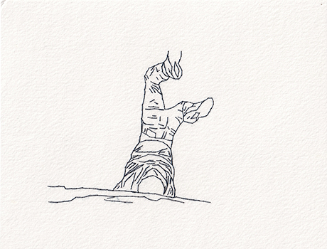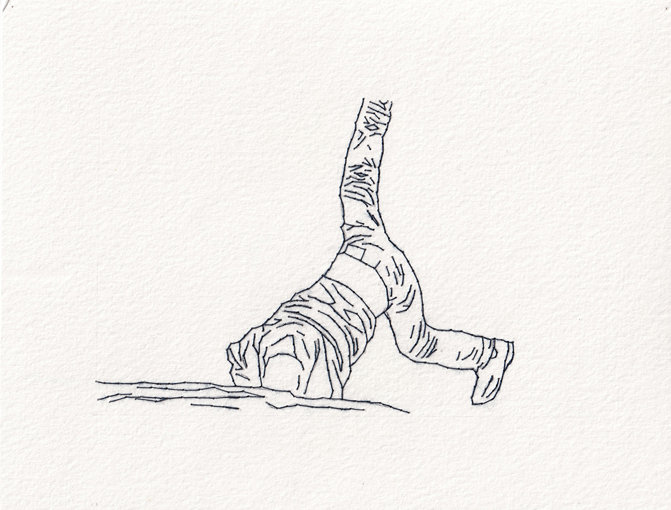 Feu rouge, verso, cotton thread on paper, 16 × 23 cm, 2007