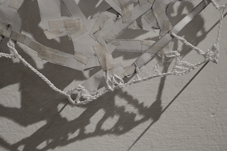 Unir (To join) series, paper, adhesive tape, crocheted thread, 24 × 23 cm, 2011
