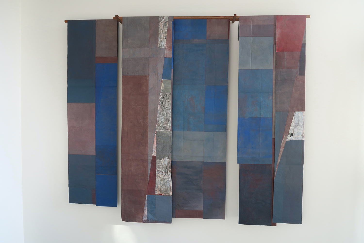 La surface du vent, oil painting on rice paper, hand sewn, structure in pear wood, 230 × 280 cm, 2024-25