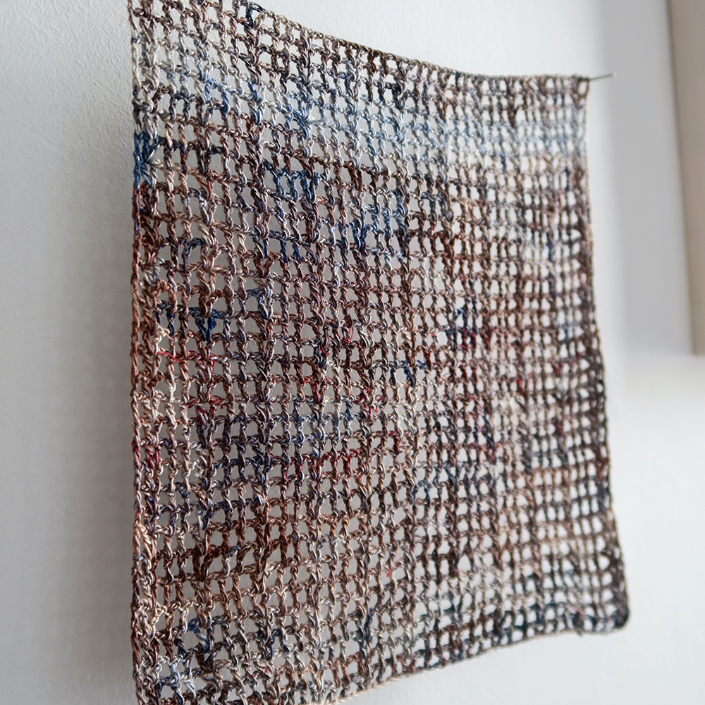 Colourful knotted time painted and crocheted cotton thread, 19 × 18 cm, 2024